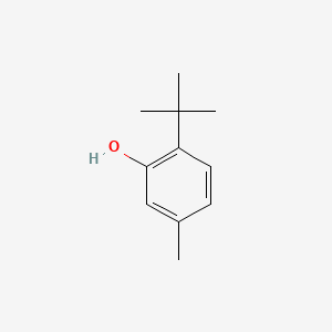 This compound, also known as 2-tert-butyl-5-methylphenol, is an organic compound with the chemical formula C₁₁H₁₆O.[1][2] Structurally, it is a derivative of m-cresol (B1676322) featuring a tert-butyl group substitution on the benzene (B151609) ring.[1] This compound typically appears as a white to off-white crystalline solid or a clear, colorless viscous liquid, depending on ambient conditions, and possesses a mild, phenolic odor.[1][3] First synthesized in the mid-20th century during the development of phenolic antioxidants, it has found widespread industrial application as a stabilizer and antioxidant in polymers, rubber, and lubricants due to its ability to scavenge free radicals.[1] It is also utilized as a preservative in cosmetics and pharmaceuticals.[1]