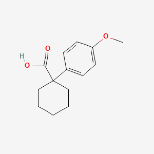 The synthesis of 1-(4-Methoxyphenyl)cyclohexanecarboxylic acid typically involves the reaction of 4-methoxybenzyl chloride with cyclohexanone in the presence of a base, followed by oxidation to introduce the carboxylic acid group . The reaction conditions often include the use of solvents such as ethanol or methanol and catalysts like sodium hydroxide or potassium carbonate.