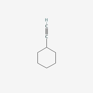 This compound, also known as cyclohexylacetylene, is an organic compound with the chemical formula C₈H₁₂. It consists of a cyclohexane ring attached to a terminal alkyne group. This unique combination of a bulky, saturated cyclic structure and a reactive ethynyl functional group makes it a valuable building block in organic synthesis.[1] Its applications range from being a precursor in the synthesis of complex organic molecules, including pharmaceuticals and agrochemicals, to its use in materials science and as a research tool for studying reaction mechanisms.[1] This guide provides a comprehensive overview of the physical and chemical properties of this compound, detailed experimental protocols, and a summary of its reactivity and potential applications.
