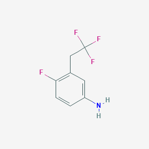 4-Fluoro-3-(2,2,2-trifluoroethyl)aniline is a fluorinated aromatic amine featuring a trifluoroethyl (-CH₂CF₃) substituent at the 3-position and a fluorine atom at the 4-position of the benzene ring. This structure combines the electronic effects of fluorine (high electronegativity, inductive withdrawal) with the lipophilicity and metabolic stability imparted by the trifluoroethyl group. Such compounds are pivotal in pharmaceutical and agrochemical research, where fluorine substitution optimizes bioavailability and target binding .