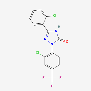 The synthesis of 2-(2-Chloro-4-(trifluoromethyl)phenyl)-5-(2-chlorophenyl)-1H-1,2,4-triazol-3(2H)-one involves several steps. One common method includes the reaction of 2-chloro-4-(trifluoromethyl)aniline with 2-chlorobenzoyl chloride in the presence of a base such as triethylamine. This reaction forms an intermediate, which is then cyclized using hydrazine hydrate to yield the desired triazole compound. Industrial production methods may involve similar steps but are optimized for large-scale synthesis, ensuring high yield and purity.