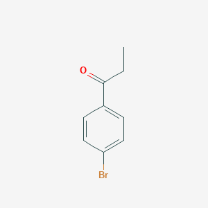The exact mass of the compound p-Bromopropiophenone is unknown and the complexity rating of the compound is unknown. The compound has been submitted to the National Cancer Institute (NCI) for testing and evaluation and the Cancer Chemotherapy National Service Center (NSC) number is 83574. The United Nations designated GHS hazard class pictogram is Irritant, and the GHS signal word is WarningThe storage condition is unknown. Please store according to label instructions upon receipt of goods.