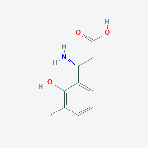 The mechanism by which (3R)-3-Amino-3-(2-hydroxy-3-methylphenyl)propanoic acid exerts its effects involves interactions with specific molecular targets. These interactions can influence various biochemical pathways, leading to changes in cellular functions. For example, the compound may act as an inhibitor or activator of certain enzymes, thereby modulating metabolic processes.