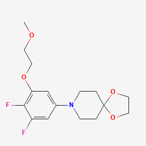 The mechanism of action of 8-(3,4-Difluoro-5-(2-methoxyethoxy)phenyl)-1,4-dioxa-8-azaspiro[4.5]decane involves its interaction with specific molecular targets and pathways. These interactions can lead to various biological effects, depending on the context in which the compound is used. For example, in medicinal applications, it may interact with enzymes or receptors to modulate their activity, leading to therapeutic effects .