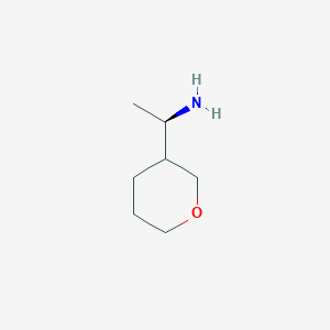 The mechanism of action of (1R)-1-(Tetrahydro-2H-pyran-3-YL)ethan-1-amine involves its interaction with specific molecular targets. These targets may include enzymes, receptors, or other proteins. The compound’s effects are mediated through binding to these targets, leading to changes in cellular processes and pathways.