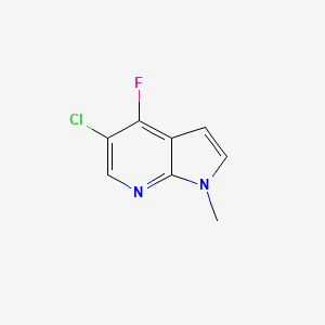 5-Chloro-4-fluoro-1-methyl-1H-pyrrolo[2,3-b]pyridine is a heterocyclic compound featuring a pyrrolo[2,3-b]pyridine core substituted with chlorine (position 5), fluorine (position 4), and a methyl group (position 1). Its molecular formula is C₈H₆ClFN₂ (calculated from substituents on the pyrrolo[2,3-b]pyridine scaffold) . The methyl group at the 1-position enhances lipophilicity, while the electron-withdrawing chloro and fluoro substituents influence electronic distribution and stability. This compound is of interest in medicinal chemistry due to the pharmacological relevance of pyrrolo[2,3-b]pyridine derivatives in targeting receptors such as dopamine D4 .