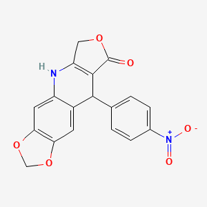 InChI=1S/C18H12N2O6/c21-18-17-13(7-24-18)19-12-6-15-14(25-8-26-15)5-11(12)16(17)9-1-3-10(4-2-9)20(22)23/h1-6,16,19H,7-8H2 |