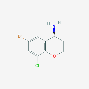 (S)-6-Bromo-8-chlorochroman-4-amine is a chemical compound that belongs to the class of chroman derivatives Chroman derivatives are known for their diverse biological activities and are often used in medicinal chemistry