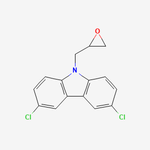 The mechanism of action of 3,6-dichloro-9-(oxiran-2-ylmethyl)-9H-carbazole depends on its specific application. In biological systems, it may interact with molecular targets such as enzymes, receptors, or DNA, leading to various biological effects. The epoxide group can form covalent bonds with nucleophilic sites in biomolecules, potentially leading to inhibition of enzyme activity or modulation of signaling pathways.