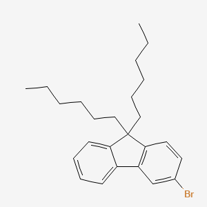 The mechanism of action of 3-Bromo-9,9-dihexyl-9H-Fluorene involves its interaction with specific molecular targets and pathways. The bromine atom and hexyl groups play a crucial role in determining the compound’s reactivity and interactions. The compound can act as an electron donor or acceptor, depending on the reaction conditions and the nature of the interacting species .