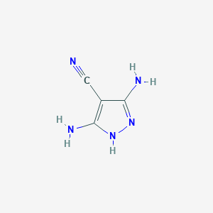 This compound, with the CAS number 6844-58-2, is a pyrazole derivative featuring two amino groups and a nitrile group. These functional groups contribute to its unique chemical reactivity and biological profile.[1][2]