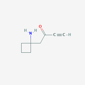 1-(1-Aminocyclobutyl)but-3-yn-2-one is a chemical compound with the molecular formula C8H11NO and a molecular weight of 137.18 g/mol . This compound is characterized by its unique structure, which includes an aminocyclobutyl group attached to a but-3-yn-2-one moiety.
