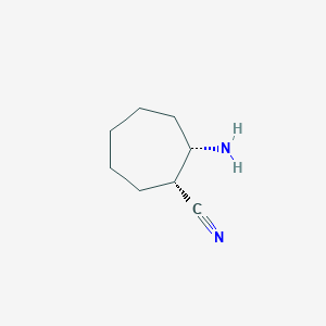 The mechanism of action of (1R,2S)-2-aminocycloheptane-1-carbonitrile involves its interaction with specific molecular targets and pathways. The compound can act as a ligand, binding to receptors or enzymes and modulating their activity. The exact pathways and targets depend on the specific application and the biological system being studied .