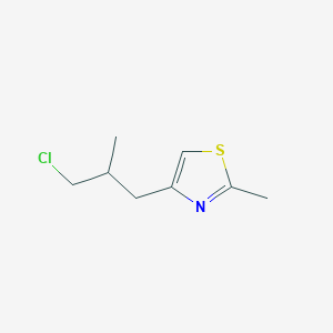 The mechanism of action of 4-(3-Chloro-2-methylpropyl)-2-methyl-1,3-thiazole depends on its specific application. In biological systems, it may interact with molecular targets such as enzymes or receptors, leading to inhibition or activation of specific pathways. The chloro and methyl groups can influence its binding affinity and specificity towards these targets, thereby modulating its biological effects.