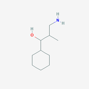 3-Amino-1-cyclohexyl-2-methylpropan-1-ol (CAS: 1520513-64-7) is a secondary amine-alcohol with the molecular formula C₁₀H₂₁NO and a molecular weight of 171.28 g/mol . Its structure features a cyclohexyl group attached to a propanol backbone substituted with a methyl group and an amino group.