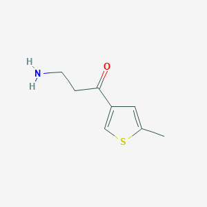 The synthesis of 3-Amino-1-(5-methylthiophen-3-yl)propan-1-one typically involves the reaction of 5-methylthiophene-3-carboxaldehyde with an appropriate amine under specific conditions. One common method involves the use of reductive amination, where the aldehyde group is reduced in the presence of an amine and a reducing agent .