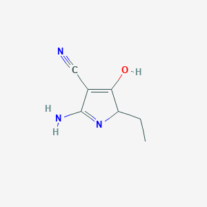 The mechanism of action of 2-amino-5-ethyl-4-oxo-4,5-dihydro-1H-pyrrole-3-carbonitrile involves its interaction with specific molecular targets and pathways. The amino and nitrile groups can form hydrogen bonds and other interactions with biological molecules, influencing their activity. The compound may inhibit or activate certain enzymes or receptors, leading to its observed effects.