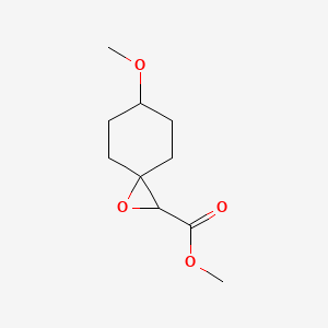 The synthesis of Methyl 6-methoxy-1-oxaspiro[2.5]octane-2-carboxylate typically involves the reaction of appropriate starting materials under controlled conditions. One common method involves the esterification of 6-methoxy-1-oxaspiro[2.5]octane-2-carboxylic acid with methanol in the presence of a strong acid catalyst such as sulfuric acid. The reaction is carried out under reflux conditions to ensure complete conversion of the acid to the ester .