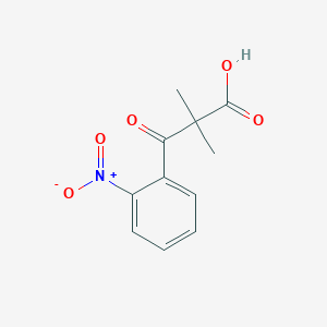 The synthesis of 2,2-Dimethyl-3-(2-nitrophenyl)-3-oxopropanoic acid typically involves the nitration of a suitable precursor, followed by a series of reactions to introduce the dimethyl and oxo groups One common method involves the nitration of 2-methylbenzoic acid, followed by a Friedel-Crafts acylation to introduce the oxo group