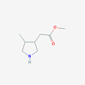 The mechanism of action of Methyl 2-(4-methylpyrrolidin-3-yl)acetate involves its interaction with specific molecular targets, such as enzymes or receptors. The pyrrolidine ring can mimic the structure of natural substrates, allowing the compound to bind to active sites and modulate biological activity. This interaction can lead to inhibition or activation of enzymatic pathways, depending on the specific target and context .