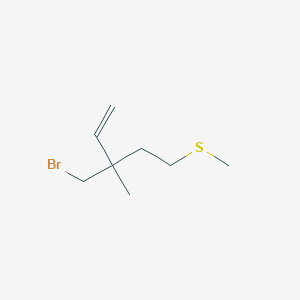 3-(Bromomethyl)-3-methyl-5-(methylsulfanyl)pent-1-ene is a compound of interest due to its potential biological activities, particularly in the fields of medicinal chemistry and pharmacology. This article reviews the existing literature on the biological activity of this compound, focusing on its synthesis, mechanisms of action, and efficacy against various biological targets.