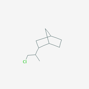 2-(1-Chloropropan-2-yl)bicyclo[2.2.1]heptane is a norbornane derivative featuring a bicyclo[2.2.1]heptane scaffold substituted with a 1-chloropropan-2-yl group at the 2-position. The bicyclo[2.2.1]heptane core is a rigid, bridged hydrocarbon system known for its stability and versatility in organic synthesis and pharmaceutical applications .