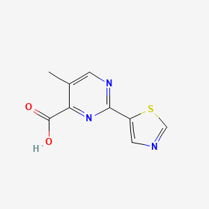 The mechanism of action of 5-Methyl-2-(1,3-thiazol-5-yl)pyrimidine-4-carboxylic acid involves its interaction with specific molecular targets such as enzymes and receptors. The thiazole ring can participate in hydrogen bonding and π-π interactions, which can modulate the activity of enzymes or receptors. The pyrimidine ring can further enhance these interactions by providing additional binding sites .