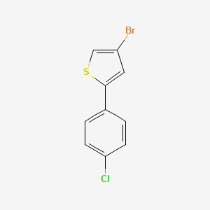 4-Bromo-2-(4-chlorophenyl)thiophene is an organic compound featuring a thiophene ring with bromine and para-chlorophenyl group substitutions. It belongs to the thiophene derivatives class, which are five-membered aromatic rings containing sulfur. The presence of bromine and chlorine substituents gives it unique chemical properties, making it a subject of interest in medicinal chemistry and material science.