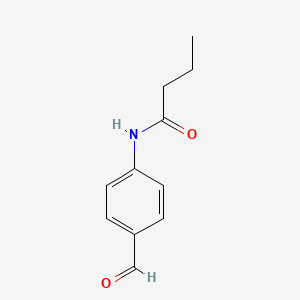 The formyl group (-CHO) can act as an electrophilic site, making it susceptible to attack by nucleophiles. This allows for the introduction of various functionalities through reactions such as aldol (B89426) condensations, Wittig reactions, and reductive aminations. The butanamide group (-NHC(O)CH₂CH₂CH₃), on the other hand, can influence the electronic properties of the aromatic ring and participate in reactions typical of amides, such as hydrolysis under certain conditions or act as a directing group in electrophilic aromatic substitution. The presence of these two distinct functional groups on a single aromatic scaffold makes Butanamide, N-(4-formylphenyl)- a key intermediate for creating a variety of more complex chemical structures.