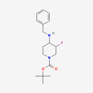The mechanism of action of Tert-butyl 4-(benzylamino)-3-fluoropiperidine-1-carboxylate depends on its specific application. In medicinal chemistry, it may act as an enzyme inhibitor or receptor ligand, interacting with molecular targets such as neurotransmitter receptors or enzymes involved in metabolic pathways. The presence of the fluorine atom can enhance the compound’s binding affinity and metabolic stability, contributing to its biological activity.