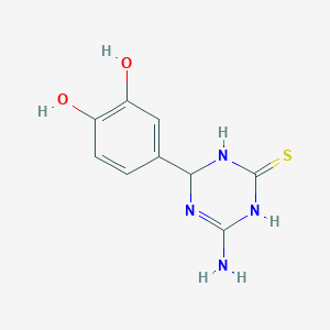 4-(4-Amino-6-mercapto-1,2-dihydro-1,3,5-triazin-2-yl)benzene-1,2-diol (CAS: 1142208-62-5) is a heterocyclic organic compound with the molecular formula C₉H₁₀N₄O₂S and a molecular weight of 238.27 g/mol . Its systematic IUPAC name is 4-amino-2-(3,4-dihydroxyphenyl)-2,5-dihydro-1H-1,3,5-triazine-6-thione , reflecting its structural components: