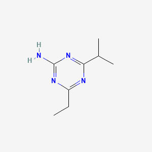 The mechanism of action of 4-Ethyl-6-(propan-2-yl)-1,3,5-triazin-2-amine involves its interaction with specific molecular targets. In biological systems, it may act as an enzyme inhibitor by binding to the active site of enzymes involved in nitrogen metabolism, thereby disrupting their function. This inhibition can lead to the accumulation of metabolic intermediates, affecting cellular processes. The compound’s unique structure allows it to interact with various pathways, making it a versatile tool in biochemical research.