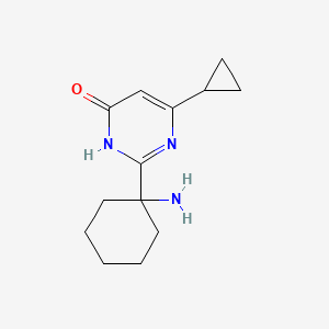 The synthesis of 2-(1-Aminocyclohexyl)-6-cyclopropyl-3,4-dihydropyrimidin-4-one typically involves multiple steps, starting with the preparation of the cyclohexyl and cyclopropyl intermediates. One common method involves the alkylation of glycine equivalents with 1,2-electrophiles, followed by intramolecular cyclization of γ-substituted amino acid derivatives . The reaction conditions often require the use of strong bases and controlled temperatures to ensure the formation of the desired product.