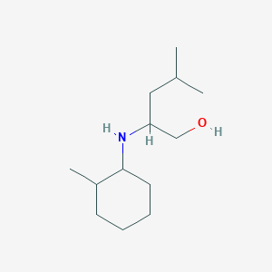 The mechanism of action of 4-Methyl-2-[(2-methylcyclohexyl)amino]pentan-1-ol involves its interaction with specific molecular targets and pathways. The compound’s amine group can form hydrogen bonds and ionic interactions with various biomolecules, influencing their function and activity. The alcohol group can also participate in hydrogen bonding, affecting the compound’s solubility and reactivity.