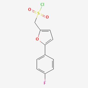 The mechanism of action of [5-(4-Fluorophenyl)furan-2-yl]methanesulfonyl chloride involves its interaction with specific molecular targets. The sulfonyl chloride group is highly reactive and can form covalent bonds with nucleophilic sites on proteins and other biomolecules. This reactivity makes it useful in modifying biological molecules for research purposes .