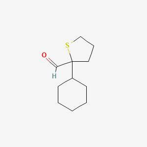 The aldehyde functional group is a cornerstone of organic synthesis, known for its susceptibility to a wide array of chemical transformations. In the context of 2-Cyclohexylthiolane-2-carbaldehyde, this reactivity is modulated by the adjacent bulky cyclohexyl group and the sulfur-containing thiolane ring.