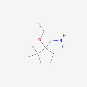 The synthesis of (1-Ethoxy-2,2-dimethylcyclopentyl)methanamine typically involves the reaction of 2,2-dimethylcyclopentanone with ethylamine under specific conditions. The reaction is carried out in the presence of a suitable catalyst and solvent, often under reflux conditions to ensure complete reaction. The product is then purified using standard techniques such as distillation or recrystallization .