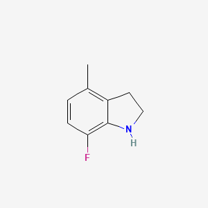 2,3-Dihydroindoles are commonly synthesized via reduction of indole derivatives or through cyclization strategies starting from substituted precursors. The presence of a fluorine atom at the 7-position and a methyl group at the 4-position requires selective synthetic approaches to introduce these substituents without compromising the indole core.