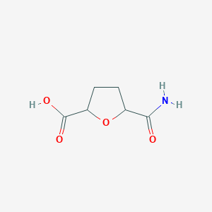 The mechanism of action of 5-Carbamoyloxolane-2-carboxylic acid involves its interaction with specific molecular targets and pathways. The compound can act as a substrate for various enzymes, leading to the formation of different products. The exact molecular targets and pathways depend on the specific application and context in which the compound is used.