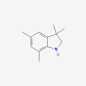 3,3,5,7-Tetramethyl-2,3-dihydro-1H-indole is a chemical compound with the molecular formula C12H17N. It is also known by synonyms such as 1368637-97-1, AKOS019068182, and EN300-1145392. Dihydroindoles, including this compound, are of interest due to their potential neuroprotective and antioxidant properties, making them useful in synthesizing new compounds with such characteristics.