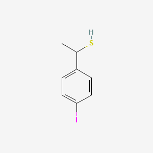 The unique electronic and structural characteristics of 1-(4-Iodophenyl)ethane-1-thiol derivatives make them promising candidates for the development of advanced materials and electronic components. The thiol group facilitates self-assembly and surface functionalization, while the iodophenyl moiety can be further modified to tune the electronic properties of the resulting materials.