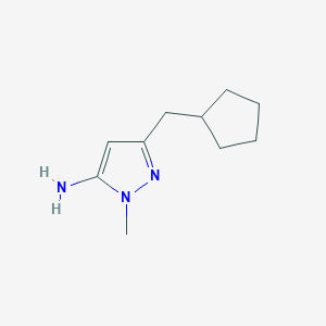 3-(Cyclopentylmethyl)-1-methyl-1H-pyrazol-5-amine is a pyrazole-based amine derivative characterized by a cyclopentylmethyl substituent at position 3, a methyl group at position 1, and an amino group at position 3. Pyrazole derivatives are widely studied due to their versatility in drug discovery, particularly as kinase inhibitors, antimicrobial agents, and intermediates in organic synthesis .