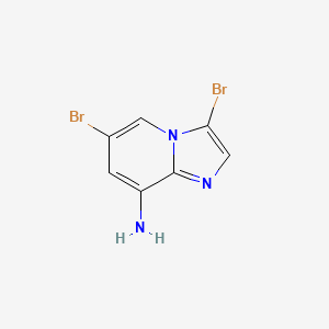 The specific compound, This compound , represents a compelling case study within this subclass. The presence of two bromine atoms, one on the imidazole (B134444) ring (position 3) and one on the pyridine (B92270) ring (position 6), along with an amine group at position 8, suggests a molecule with potentially unique and potent biological activity. While research on this specific dibrominated compound is not extensively documented in publicly available literature, its structural features can be analyzed in the context of related mono-brominated and aminated imidazo[1,2-a]pyridines to infer its potential significance. For instance, studies on 6-Bromoimidazo[1,2-a]pyridin-8-amine have highlighted its potential as a precursor for cyclin-dependent kinase-2 (CDK2) inhibitors. nih.gov