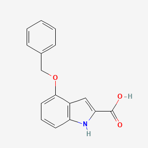 4-(Benzyloxy)-1H-indole-2-carboxylic acid (CAS: 39731-09-4) is an indole derivative featuring a benzyloxy substituent at the 4-position and a carboxylic acid group at the 2-position of the indole ring. Its molecular formula is C₁₆H₁₃NO₃, with a molecular weight of 267.28 g/mol (calculated). The benzyloxy group contributes to enhanced lipophilicity compared to unsubstituted indole-2-carboxylic acids, making it a valuable intermediate in medicinal chemistry for drug discovery, particularly in kinase inhibitor synthesis and heterocyclic amide formation .