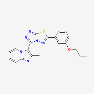 Allyl 3-[3-(2-methylimidazo[1,2-a]pyridin-3-yl)[1,2,4]triazolo[3,4-b][1,3,4]thiadiazol-6-yl]phenyl ether is a complex organic compound that has garnered attention due to its potential biological activities. This article explores its pharmacological properties, mechanisms of action, and implications for therapeutic use.