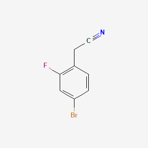 This compound, with the IUPAC name 2-(4-bromo-2-fluorophenyl)acetonitrile, is a halogenated aromatic nitrile.[1] Its molecular structure features a benzene ring substituted with a bromine atom, a fluorine atom, and a cyanomethyl (-CH₂CN) group.[2] This unique combination of functional groups makes it a versatile building block for creating more complex molecular architectures.[1][2] The presence of both bromine and fluorine significantly influences its chemical reactivity and biological activity compared to similar compounds, enhancing its utility in targeted organic synthesis and pharmaceutical research.[2] At room temperature, it exists as a white to beige crystalline powder.[2]