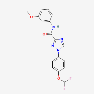 1-[4-(difluoromethoxy)phenyl]-N-(3-methoxyphenyl)-1H-1,2,4-triazole-3-carboxamide is a complex organic compound that belongs to the class of triazole derivatives. This compound is characterized by the presence of a triazole ring, which is a five-membered ring containing three nitrogen atoms. The compound also features difluoromethoxy and methoxy substituents on the phenyl rings, contributing to its unique chemical properties.