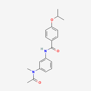 The mechanism of action of N-{3-[acetyl(methyl)amino]phenyl}-4-isopropoxybenzamide involves its interaction with specific molecular targets, such as enzymes or receptors. The compound may inhibit or activate these targets, leading to a cascade of biochemical events that result in its observed effects. The exact pathways and molecular interactions depend on the specific application and context in which the compound is used.