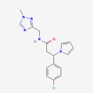 3-(4-chlorophenyl)-N-[(1-methyl-1H-1,2,4-triazol-3-yl)methyl]-3-(1H-pyrrol-1-yl)propanamide is a synthetic organic compound that features a complex structure with multiple functional groups