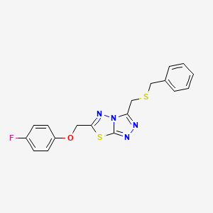 {3-[(benzylsulfanyl)methyl][1,2,4]triazolo[3,4-b][1,3,4]thiadiazol-6-yl}methyl 4-fluorophenyl ether is a heterocyclic compound that combines the structural features of triazole, thiadiazole, and ether functionalities